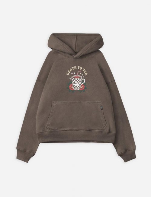 Death to Tea Skull Mug Retro Graphic Hoodie